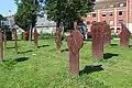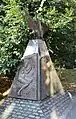 Memorial to the victims of the Katyn massacre Grounds of Clifton Cathedral 1985Alexander Paul Klecki SculptureFibre glass relief panel mounted on a block of Cornish granite with a plinth of Portland stone [1][2]