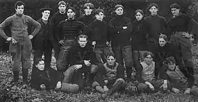 The starting lineup was Boogher (left end), McAlister (left tackle), Whitemore (left guard), Brown (center), Hassett (right guard), Langhorst (right tackle), Stringfield (right end), Goodson (quarterback), Connell (left halfback), Dye (right halfback), Farrell (fullback).[13]