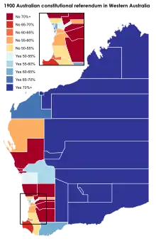 Three weeks after the Commonwealth of Australia Constitution Act became law in 1900, Western Australia held a referendum on the constitution,[1] which was also approved. The constitution came into force on 1 January 1901.[2]