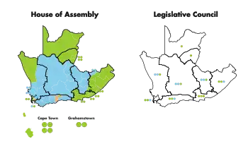 Twenty-three members of the Legislative Council were elected from nine constituencies termed "provinces," seven of which elected three members each by cumulative voting, and the remaining two provinces one member each. The House of Assembly was composed of 79 members elected from 39 electoral divisions which elected between one and four members each, in which each voter had as many votes as there were candidates to be elected, but was not permitted to cast them cumulatively, as for the Legislative Council.[1]