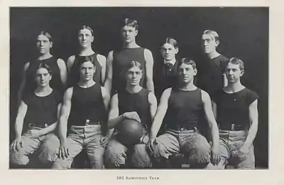 The 1900–01 Purdue Boilermakers men's basketball team was the first season Purdue University fielded a basketball team. They played a multi-game schedule, and compiled an 11–0 record against Indiana colleges and high schools. The team averaged 30.7 points a game, while holding their opponents to 10 points a game. The team, citing their perfect record, claimed to be state champions. H. Wallace Reimann lead the team as captain and unofficially as coach. William C. Curd, Jr. acted as the team's business manager.
