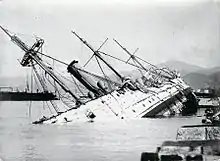 The 1906 Hong Kong typhoon was a tropical cyclone that hit Hong Kong on September 18, 1906. The natural disaster caused property damage exceeding a million pounds sterling, affected international trade,[1] and took the lives of around 15,000 people.[2]