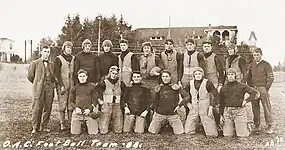 On the neutral turf of Multnomah Field in Portland, the OAC Aggies suffered a bitter defeat at the hands of their rivals from down the road, the University of Oregon Webfoots.[7] Some 1,260 fans packed a special train running up the valley to Portland for the annual gridiron showdown between the state's two most prominent schools.[7] OAC army cadets wore their uniforms, banners were waved, megaphones were raised, and enthusiasm was at a peak. Performance on the field left something to be desired, however, as one local newspaper lamented: