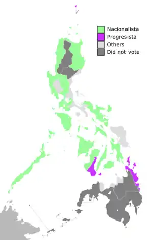 Parties that won a plurality of votes in each province. Results for local offices are also included as a separate tally for the Philippine Assembly was not provided.