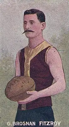 - ↑ Further along in that same article, Brosnan defends his stress on "the footballer" as the most suitable and desirable recruit: "I do not intend to institute comparisons with other sports re the percentage of players who have enlisted. In the first place, as I said before, it would be impossible to give, with any idea of accuracy, the number of footballers who have gone, and in the second, as nearly every player takes part in some other game during the summer, such as rowing, athletics, cricket, tennis, baseball, etc., he is naturally claimed by these as their own. Besides, when at a rough estimate three quarters of the Australian army is composed of sportsmen, each separate branch has done and no doubt will continue to do, their part, irrespective of what the others are doing."