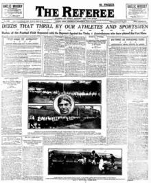 - ↑ "Les Australiens guerriers et sportifs ('The Australian Warriors and Sportsmen')", Excelsior, (Monday, 20 November 1916), p.12. The caption to the photograph, mistakenly identifies the sport as "rugby":