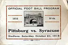 7. 1 2 3 4 "Syracuse Thumped on Her Own Field By Blue and Gold". The Pittsburgh Sunday Post. October 22, 1916. p. 20 via Newspapers.com.