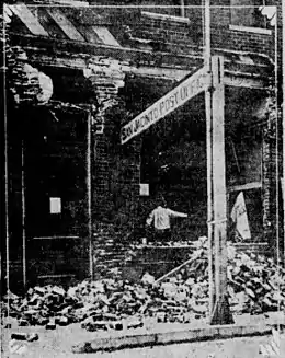 Many of the buildings in San Jacinto's business district were of poor construction, and all but one frame building and one concrete building collapsed, though high-quality structures did not experience serious damage. Minor damage to other buildings within 160 kilometers (99 mi) of San Jacinto also occurred. Roadways and irrigation canals also sustained damage and small sand blows were seen on a farm northwest of San Jacinto.[4]