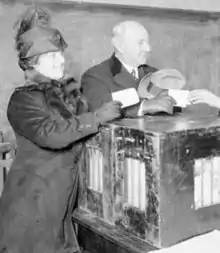 Originally, in early February 1919, Lenore O. Meder announced her intentions to run as an independent candidate, marking the entrance of a female candidate. Meder was a lawyer, and had previously served as a public works commissioner.[12] In announcing her candidacy, Meder remarked, "There is no reason why a woman cannot govern the second largest city in the United States. Can you name one of the candidates who has thrown his hat into the ring who is better qualified than I?"[13] Meder, ultimately, was not on the ballot in the general election, having not formally filed her candidacy. It would not be until 1935 that a woman (Grace A. Gray) would for the first time file to run as a candidate for mayor of Chicago.[14]