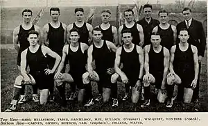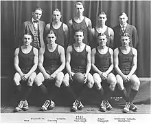 The 1920–21 season began a new era for the Illinois Fighting Illini men's basketball team. New head coach Frank Winters was coming to the University of Illinois after five successful years as head coach of Rockford Central High School in Rockford, Illinois. During his tenure in Rockford, he guided his Rabs teams to three round of 16 finishes, one quarterfinals finish and one team finished its season as state champions. Winters inherited a team whose best player, Chuck Carney, severely injured his knee in the last football game. The team went on to an overall record of 11–7.[2] The Big Ten record for the Illini, at the conclusion of the 1920–21 season was seven wins five losses and a tie for fourth place. The starting lineup included All-American Chuck Carney, Laurie Walquist and Norton Hellstrom at forward, Henry Reitsch at center, and Charles Vail, John Sabo and Walter Collins as guards.[3]