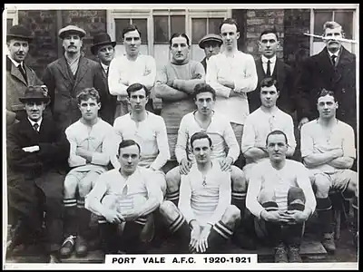 The 1920–21 season was Port Vale's second consecutive season of football (15th overall) in the English Football League.[1] The season peaked early with a double victory in the league over rivals Stoke, however, any sense of euphoria evaporated in February with the sale of star striker Bobby Blood. The club failed to find another reliable goalscorer until the arrival of Wilf Kirkham in 1923. The Vale finished at the bottom end of the table, though they did finish higher in the league than Stoke for the first time in their history.