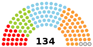 Last election 29.41%, 27 seats 36.67%, 54 seats