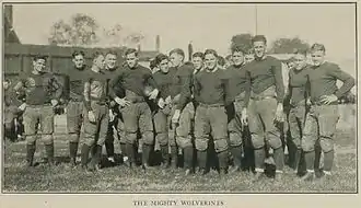 "Tie Put Pepper Into Workouts Of Wolverines" The Jackson Citizen Patriot [Jackson, Michigan] 17 Oct. 1922: 17. - ↑ Tom Perrin (1987). Football: a college history. p. 113. ISBN 9780899502946.