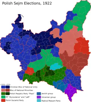 Parliamentary elections were held in Poland on 5 November 1922, with Senate elections held a week later on 12 November.[1] The elections were governed by the March Constitution of Poland, and saw the Christian Union of National Unity coalition emerge as the largest bloc in the Sejm with 163 of the 444 seats.