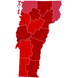 Coolidge swept every county in Vermont by landslide margins, taking more than 60% of the vote in all fourteen. Coolidge broke seventy percent of the vote in eleven counties and even broke eighty percent in seven. Notably, Coolidge received more than seventy percent of the vote even in Chittenden County, the state's most populous county, home to the state's largest city, Burlington. Just four years later, in 1928, Chittenden County flipped to the Democrats and become a Democratic stronghold in the New Deal era, making Coolidge's dominance there in 1924 remarkable. It would also be the final time that Chittenden County would be won by a Republican candidate until Dwight D. Eisenhower won it in 1952.[5]