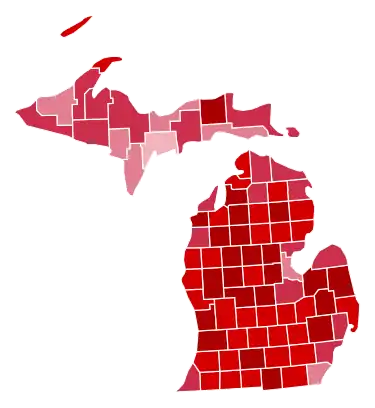 With 70.36 percent of the popular vote, Michigan would prove to be Hoover's second strongest victory in the nation after Kansas.[22] Hoover nonetheless fell five percent short of Calvin Coolidge’s record performance from 1924 due to losses of up to twenty percent in the pro-La Follette western Upper Peninsula, and in heavily Catholic Wayne and Huron Counties. Nevertheless, scholars have demonstrated that there was no realignment of the one-party system in Michigan until the following 1932 election.[23] The Democratic Party did however win a seat in the state Senate for the first time since 1916.[10]