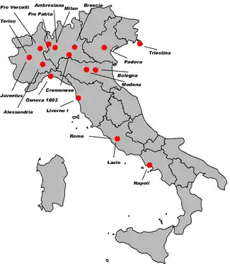 The 18 clubs were the first 9 of each group of 1928–29 Divisione Nazionale.