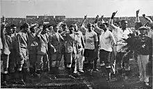 According to the format of the tournament, the 13 participants were divided into four pools. The winner of each group would progress to the semi-finals of the knockout stage.[1] Since there were no predefined brackets, a draw took place in 23 July to decide the semi-final meetings.[2] Hosts Uruguay were drawn to play Yugoslavia. Argentina and the United States would contest the other semi-final.