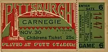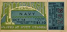 September 30, 1933 ticket stub from Pitt vs. Washington & Jefferson game