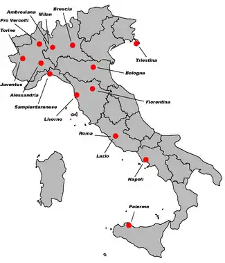 Serie A 1934-35 teams distribution