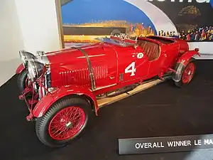 The race was winding down to a predictable finish, when Fontés pitted at 3pm, off-schedule. At the previous pit-stop, the car had not had its oil topped up. The Lagonda had a two-lap lead but had dangerously low oil pressure. Rules stipulated it was not allowed to be replenished outside the standard pit-windows, so with less than an hour to go, he gingerly left for another lap.[31][27][4] He came back with the car running worse, but the pit-crew exhorted him to carry on, albeit cautiously. Louis-Dreyfus was driving hard, and with 20 minutes to go, the public-address loudspeaker reported he was closing in quickly on the Lagonda for the lead. The next lap he overtook Fontés and his pit-team signalled him to ease off, believing him to now be leading. However, at 3.55, the announcer admitted the mistake that the Alfa was, in fact, still 3 minutes behind on the same lap.[8][31][4][29] By then it was too late to catch the ailing Lagonda and it came home for the first British win since Bentley at the start of the decade.[33]