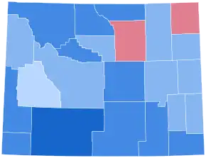 As of the 2020 presidential election, this is the best ever performance by a Democratic presidential nominee in Wyoming, and the last election in which a Democrat has carried the following counties: Campbell, Converse, Niobrara, Sublette, Washakie and Weston, as even Lyndon B. Johnson failed to carry them when he won Wyoming by 13 points against Republican Barry Goldwater in 1964.[2]