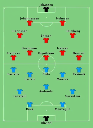 The narrative leading to this highly anticipated match was built around an overconfident Brazil, who had impressed in the previous three matches. However, Italy had a better start to the game, creating the best chances but finding a well-positioned Walter stopping their attacks. In the second half, Italy soon found the net with Colaussi, before being awarded a penalty following a foul in the box by Domingos da Guia, his third in the tournament. The penalty was calmly converted by Meazza. At 2–0, Brazil pushed forward to break the Italian defence, but only managed to score a goal in the 87th minute with Romeu scoring from a corner kick. Some tense moments followed, but Italy managed to hold out for the remaining time, reaching their second final in a row.[2]