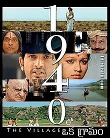 1940 Lo Oka Gramam (transl. A village in 1940) is a 2010 Indian Telugu-language period drama film directed by Narasimha Nandi. It stars Baladitya and Sri Ramya, with Rallapalli, Mukkuraju, Rajitha and Gundu Hanumantha Rao in supporting roles. It is inspired by the story Nayudu Pilla written by Gudipati Venkata Chalam. The director mentions that Nayudu Pilla inspired him to develop the story.[1] It is produced by N. C. Narasimham.[2]