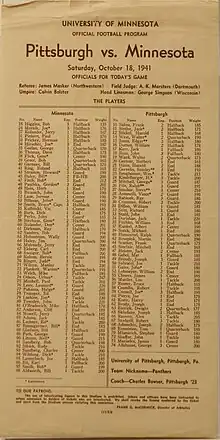 - ↑ "Gopher-Pitt Play-By-Play". Minneapolis Sunday Tribune and Star Journal. October 19, 1941. p. Peach Section-2. Retrieved February 7, 2023 – via Newspapers.com.