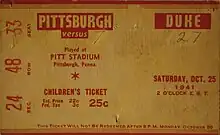 - ↑ Tom Hopkins (October 26, 1941). "Pitt Gets Touchdown, But Loses to Duke, 27–7". Pittsburgh Sun-Telegraph. p. Section III-2. Retrieved February 9, 2023 – via Newspapers.com.