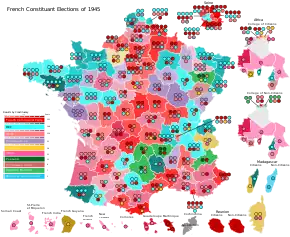 Legislative elections were held in France on 21 October 1945 to elect a Constituent Assembly to draft a constitution for a Fourth French Republic. A total of 522 seats were elected through proportional representation; women were allowed to vote for the first time.