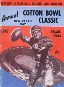 The 1947 Cotton Bowl Classic was a post-season college football bowl game played on January 1, 1947 in the Cotton Bowl stadium at Dallas, Texas, between the Arkansas Razorbacks and the LSU Tigers. Due to adverse winter weather, neither team scored, and Arkansas and LSU tied the game, later referred to as Ice Bowl, 0–0. The two teams met again in the Cotton Bowl Classic in 1966.[1]