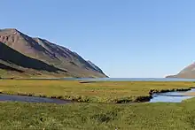 ![]() Héðinsfjörður seen from its headwaters; Hestfjall, on which the DC-3 crashed, is on the left. | |