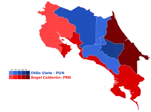 General elections were held in Costa Rica on 8 February 1948.[1] Otilio Ulate Blanco of the National Union Party won the presidential election with 55% of the vote, although the elections were deemed fraudulent by members of the governing National Republican Party (who supported Rafael Calderón). The results were annulled by Congress, leading to the six-week Costa Rican Civil War later that year.[2][3] Following the war, the results of the parliamentary election were also annulled.[1]