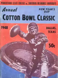The 1948 Cotton Bowl Classic was a post-season game between the SMU Mustangs and the Penn State Nittany Lions. It was the first interracial bowl game in the United States.[1] The game was a struggle of yardage with the final score being decided on a missed extra point.