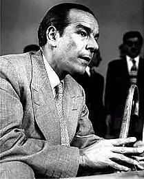 The official pretext for the start of the coup was Mosaddegh's decree to dissolve Parliament, giving himself and his cabinet complete power to rule, while effectively stripping the Shah of his powers.[13][14][15] It resulted in him being accused of giving himself "total and dictatorial powers." The Shah, who had been resisting the CIA's demands for the coup, finally agreed to support it.[13][14][15] Having obtained the Shah's concurrence, the CIA executed the coup.[52] Firmans (royal decrees) dismissing Mosaddegh and appointing General Fazlollah Zahedi (a loyalist who had helped Reza Shah reunify Iran decades earlier)[14] were drawn up by the coup plotters and signed by the Shah. Having signed the decrees and delivered them to General Zahedi, he and Queen Soraya departed for a week-long vacation in northern Iran.[53] On Saturday 15 August, Colonel Nematollah Nassiri,[14] the commander of the Imperial Guard, delivered to Mosaddegh a firman from the Shah dismissing him. Mosaddegh, who had been warned of the plot, probably by the Communist Tudeh Party, rejected the firman and had Nassiri arrested.[54][55][56] Mosaddegh argued at his trial after the coup that under the Iranian constitutional monarchy, the Shah had no constitutional right to issue an order for the elected Prime Minister's dismissal without Parliament's consent. However, the constitution at the time did allow for such an action, which Mosaddegh considered unfair.[15][57][58] Mosaddegh's supporters took to the streets in violent protests.[13] Following the failed coup attempt, the Shah, accompanied by his second wife Soraya Esfandiary-Bakhtiari and Aboul Fath Atabay[59] fled to Baghdad. Arriving unannounced, the Shah asked for permission for himself and his consort to stay in Baghdad for a few days before continuing on to Europe.[53] After high-level Government consultations, they were escorted to the White House, the Iraqi Government's guest house, before flying to Italy in a plane flown by Mohammad Amir Khatami.[59]
