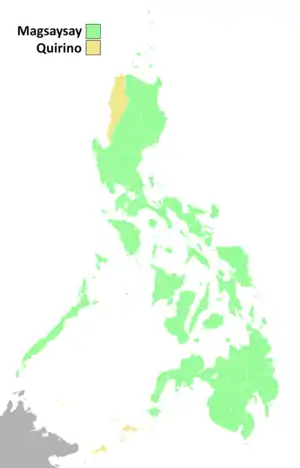 Magsaysay carried most of the provinces except Ilocos Norte, Ilocos Sur, La Union, Tawi-Tawi, Sulu and Abra in which Ilocos Sur is a bailiwick and home province of President Quirino.