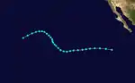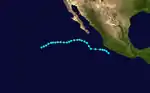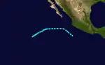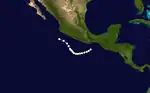 On June 17, an area of low pressure was identified on surface weather maps just off the coast of Guatemala.[5] The following day, the system was classified as a tropical storm approximately 210 mi (340 km) southwest of Guatemala City. Tracking generally northwest, the system acquired maximum sustained winds of 50 mph (85 km/h). On June 20–21, the storm moved parallel to the Mexican coastline before turning north on June 22. It was last noted offshore on this day, approximately 50 mi (85 km) south of Lázaro Cárdenas, Michoacán.[6]