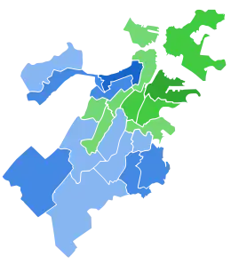 ![]() Results by ward Hynes: 50–60% 60–70% 70–80% Powers: 50–60% 60–70% 70–80% | ||||||||||||||||