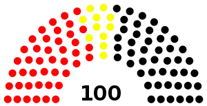 | Party | Vote % | Vote % ± | Seats | Seats ± | ||||||||||