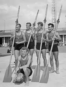 ![]() The German eight of the Ratzeburg Rowing Club after winning the final | |