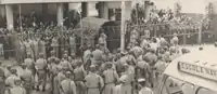 The officialdom demanded that the sailors leave, "dead or alive."[58] The Marine Corps Police Company, deployed from Ilha das Cobras, was in charge of the invasion, scheduled for 09:15.[69][lower-alpha 3] 90 marines[70] came in five buses.[41] From inside the Union, the sailors incited the marines and sang the National Anthem. Private Raimundo Nonato Barbosa, disobeying his orders, abandoned his helmet, ammunition, and INA machine gun and joined the sailors. 25 of his comrades repeated the gesture, to the euphoria of the sailors and the amazement of the commanders. The rest of the company had to retreat.[71]