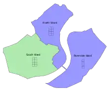 2.^ Two aldermen were elected unopposed in each of the North ward and the South ward and one alderman was elected unopposed in the Waterside ward.