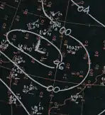 An upper air cyclonic circulation formed over East Pakistan and the adjoining Bay of Bengal on August 12 in the morning. A low-pressure area subsequently developed on that evening before strengthening to a depression on the next day. Meteorological analysis revealed that there was a fall in pressure at that time inland the Gangetic West Bengal and Orissa. While moving west-northwestwards, it rapidly intensified to a cyclonic storm near Chuksar Island, or south-southwest of Sagar Island. Sandheads reported winds of 95 km/h (60 mph) that day, well equivalent to a severe cyclonic storm in the modern-day NIO scale, while its pressure bottomed at 990 hPa (29.23 inHg) at 17:30 IST. Continuing its course, it crossed north Orissa near Balasore that night before weakening to a deep depression, about 100 kilometres to the south of Jamshedpur. As it changed its movement towards the northwest, it further weakened to a depression before degenerating to an area of low-pressure over northwest Madhya Pradesh and the adjoining southwest Uttar Pradesh on August 16 in the evening.[3]