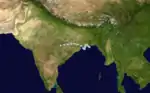 A low-pressure area moved from Burma to the Bay of Bengal on September 8, where it developed into a depression. The depression strengthened as it moved to the northwest and became a deep depression on the next day, when it was 150 km (93 mi) southeast of Calcutta. The system crossed the West Bengal coast later and moved to the northwest across the Chota Nagpur Plateau. The depression stalled over Uttar Pradesh on September 12, and remained near Lucknow until September 14. The depression then turned to the east and weakened into a remnant low over northern Bihar, on September 18.[2] The depression brought widespread rain to West Bengal, Orissa, Bihar, Uttar Pradesh, and Madhya Pradesh during its lifespan, with rains of 140 mm (5.5 in) as far west as Lucknow. The rains in Uttar Pradesh caused severe property damage and flooding, with some 150 people losing their lives in the state. The Ganges flooded in northern Bihar, inundating parts of Munger District, whilst the Gandaki River flooded parts of Motihari. The rains worsened floods in south Bengal, increasing the death toll from the floods there to 80 and affecting 8 million people, with considerable damage done to crops and housing. Jaleswar in Orissa was entirely flooded.[2]