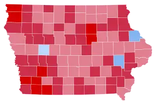 | Iowa | 4,202 | 60.34% | 2,578 | 37.02% | 179 | 2.57% | 5 | 0.07% | 1,624 | 23.32% | 6,964 |