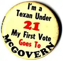 While those working on the campaign expected McGovern to lose in Texas, they aimed to decrease his margin of defeat.[10] McGovern's campaign received little support from Democratic statewide officeholders.[9] Additionally, Dolph Briscoe, the Democratic nominee in the coinciding 1972 Texas gubernatorial election refused to make any campaign appearances alongside McGovern.[9] One of the few statewide office holders to support McGovern's campaign was Texas Land Commissioner Bob Armstrong.[9] Lloyd Bentsen also endorsed McGovern.[11]