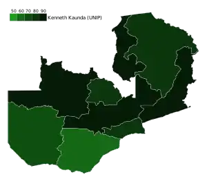 General elections were held in Zambia on 5 December 1973. They were the first elections held since the country was formally declared a one-party state in August, with the United National Independence Party (UNIP) as the only legally permitted party.[1] UNIP leader Kenneth Kaunda was automatically elected to a third five-year term as President, and was confirmed in office via a referendum in which 88.8% of voters approved his candidacy. UNIP also won all 125 seats in the National Assembly. Voter turnout was 39% of the 1,746,107 registered voters for the presidential election,[2] and 33% for the National Assembly election.[3]