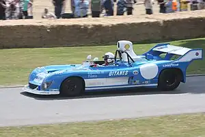 There were also several one-off prototype specials: Alain de Cadenet was back at Le Mans, having fixed the aerodynamic problems that plagued him the year before. It was now in British racing green without its Duckhams Oil sponsorship. However, after being injured in a motorcycle accident, his place alongside Chris Craft was taken by McLaren and Cosworth-engine developer John Nicholson.[16][7] A new Lola, the T284 (also running a Cosworth engine), was entered by Michel Dupont Racing alongside his Chevron in the 2-litre category.[7] Unable to secure a new 312PB from the factory in 1971, the North American Racing Team (NART) had developed their own spyder version of the 312P. This was subsequently developed in-house to PB-specification in 1972 and arrived at this year's race for Jean-Claude Andruet/Teodoro Zeccoli.[16] The successor to the Dino 246 was the 308 GT4 and NART also prepared a special racing version using engine components taken from the 512BB and 365 GTB/4. The 3-litre engine now pushed out 250 bhp, capable of 285 kp/h (175 mph).[17] The Japanese Sigma rotary returned with an updated model, and now with stronger financial backing from Mazda. Their drivers included the debut race for future Le Mans stalwart Yojiro Terada.[18]