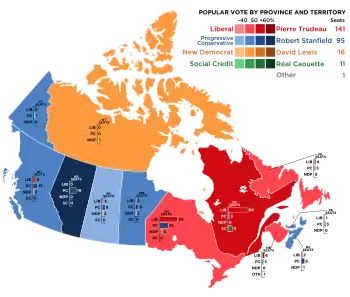 Liberal Pierre Trudeau 264 109 109 141 +29.4% 4,102,853 43.15% +4.73pp